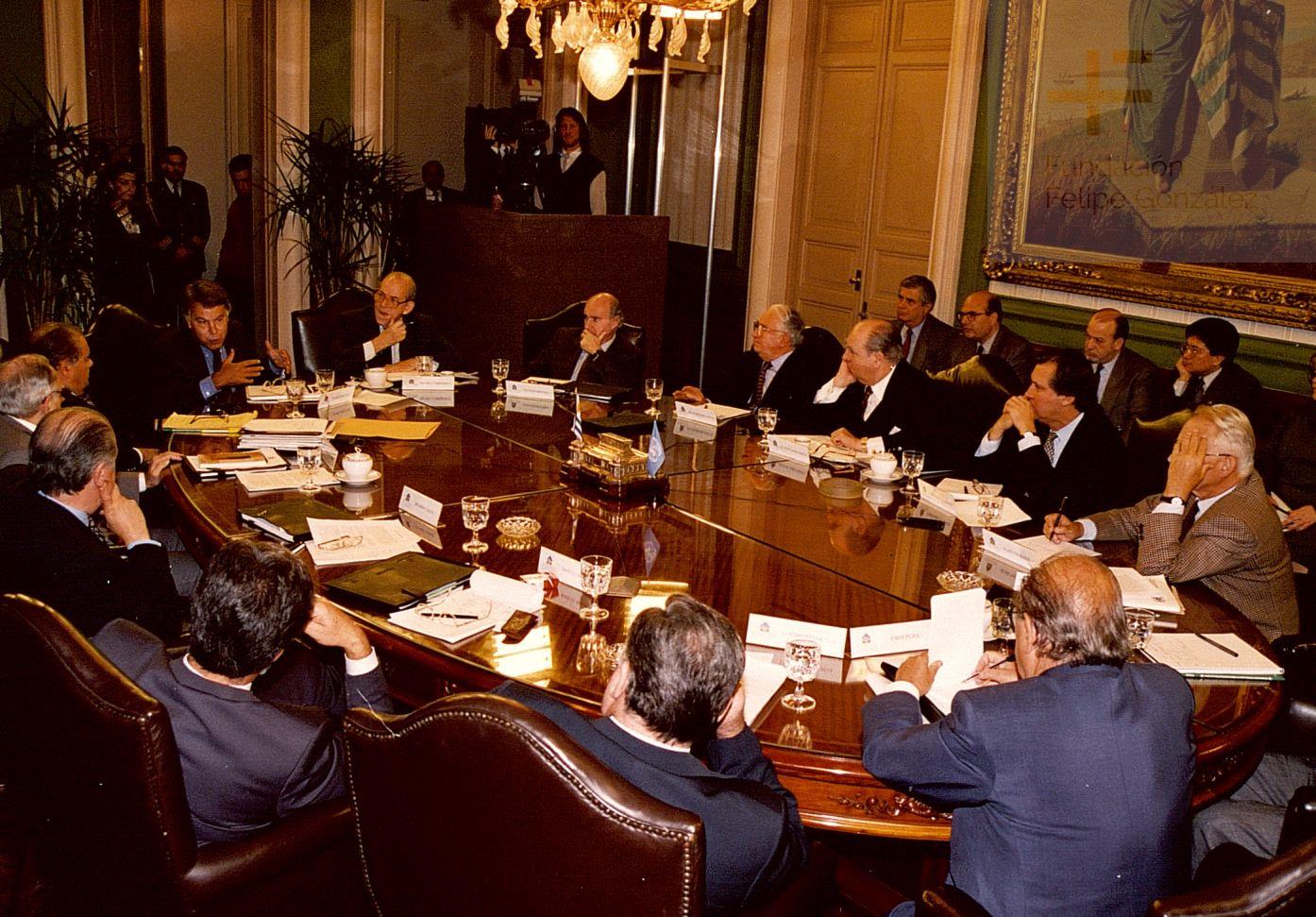 La capital uruguaya acoge la reunión constitutiva del Círculo de Montevideo los días 5, 6 y 7 de septiembre de 1996. Este foro de reflexión reúne a economistas, intelectuales y jefes de Estado para abordar los desafíos que enfrentan las democracias latinoamericanas en un contexto internacional marcado por la globalización. Presidido por Julio María Sanguinetti, en este primer encuentro participan políticos como Felipe González, Ricardo Lagos y Belisario Betancur, junto con economistas y pensadores como Enrique Iglesias y Alain Touraine.
