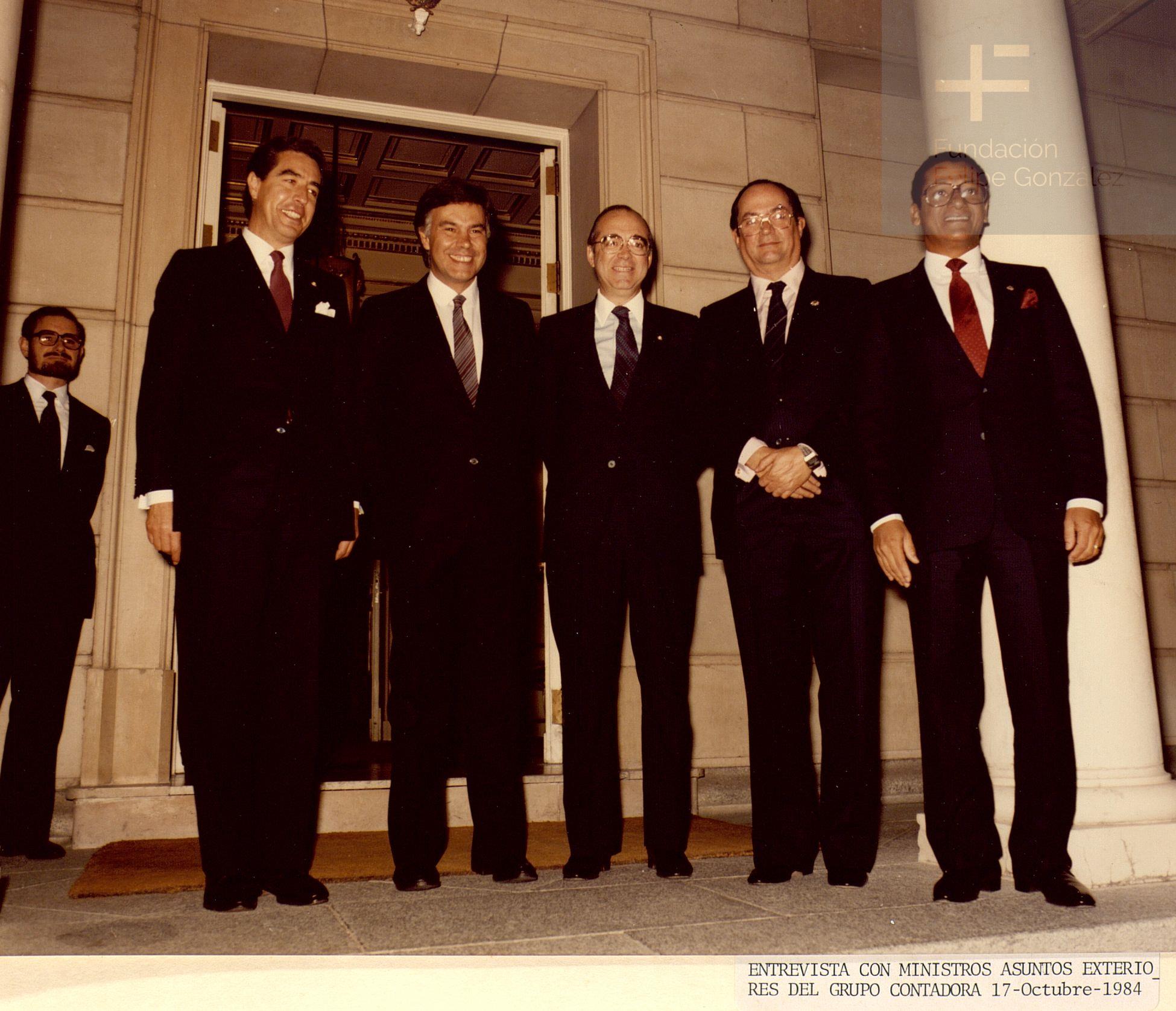 El presidente Felipe González junto a los ministros de Exteriores del Grupo Contadora