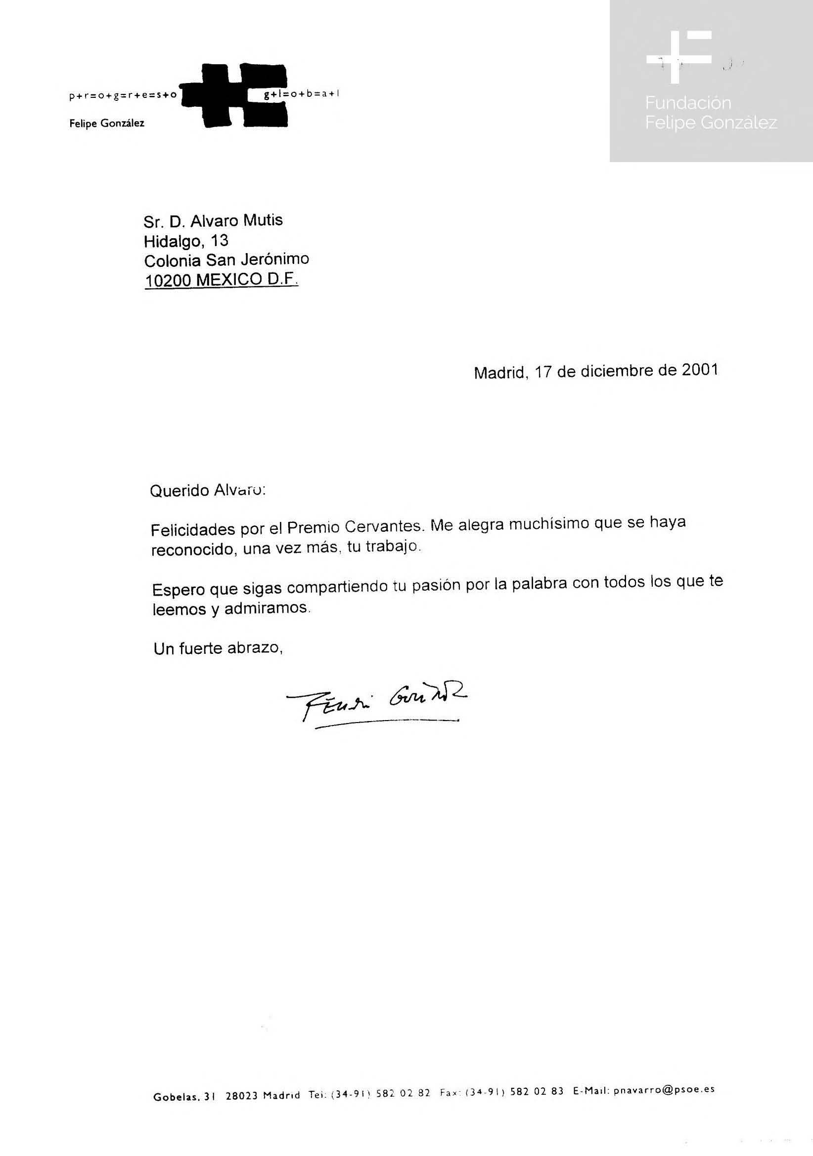 El presidente Felipe González felicita al escritor por ganar el Premio Cervantes en 2001
