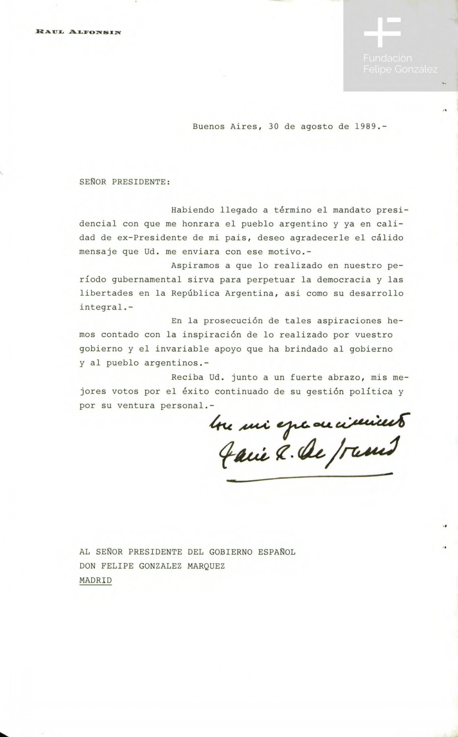 Así se dirigen los presidentes Felipe González y Raúl Alfonsín en la correspondencia que intercambian