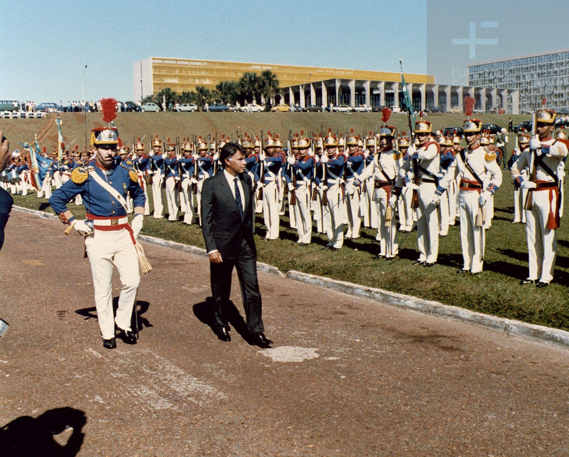 Al llegar a La Moncloa en 1982, Felipe González emprende una política iberoamericana que apuesta por un apoyo férreo y contundente a los procesos de democratización iniciados en países como Argentina, Brasil o Chile. Con el objetivo de expresar el respaldo del gobierno español al proceso democrático iniciado en 1985 por Brasil, Felipe González visita la capital administrativa -Brasilia- en pleno proceso constituyente. Allí es recibido por el presidente José Sarney.