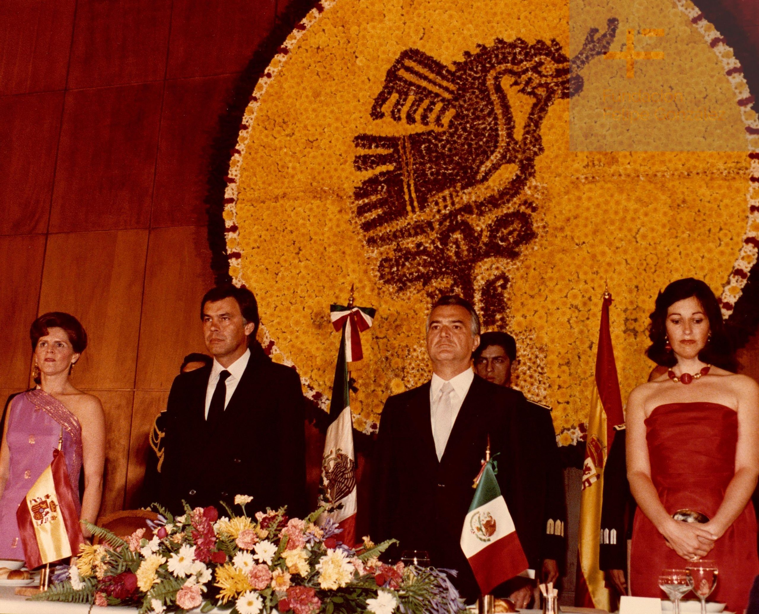 Miguel de la Madrid, presidente de México entre 1982 y 1988, y la primera dama, Paloma Cordero, reciben al presidente español y a su esposa Carmen Romero. En el primer día de la visita oficial, los anfitriones ofrecen a sus invitados una cena de gala en el palacio de Itatelolco Al día siguiente Felipe González se reúne en la Embajada de España en Ciudad de México con la colectividad española, integrada por un gran número de exiliados republicanos. Ante ellos, expone el proyecto histórico que lidera para construir un futuro de paz, libertad y reconciliación en España.