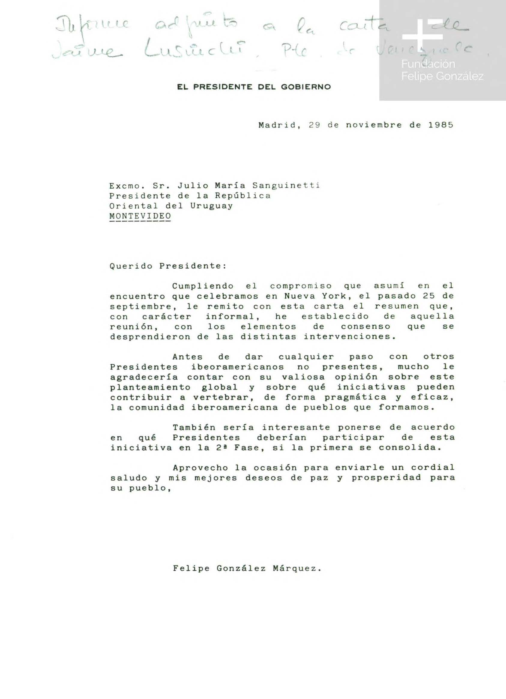 Correspondencia entre el presidente uruguayo Julio María Sanguinetti y Felipe González